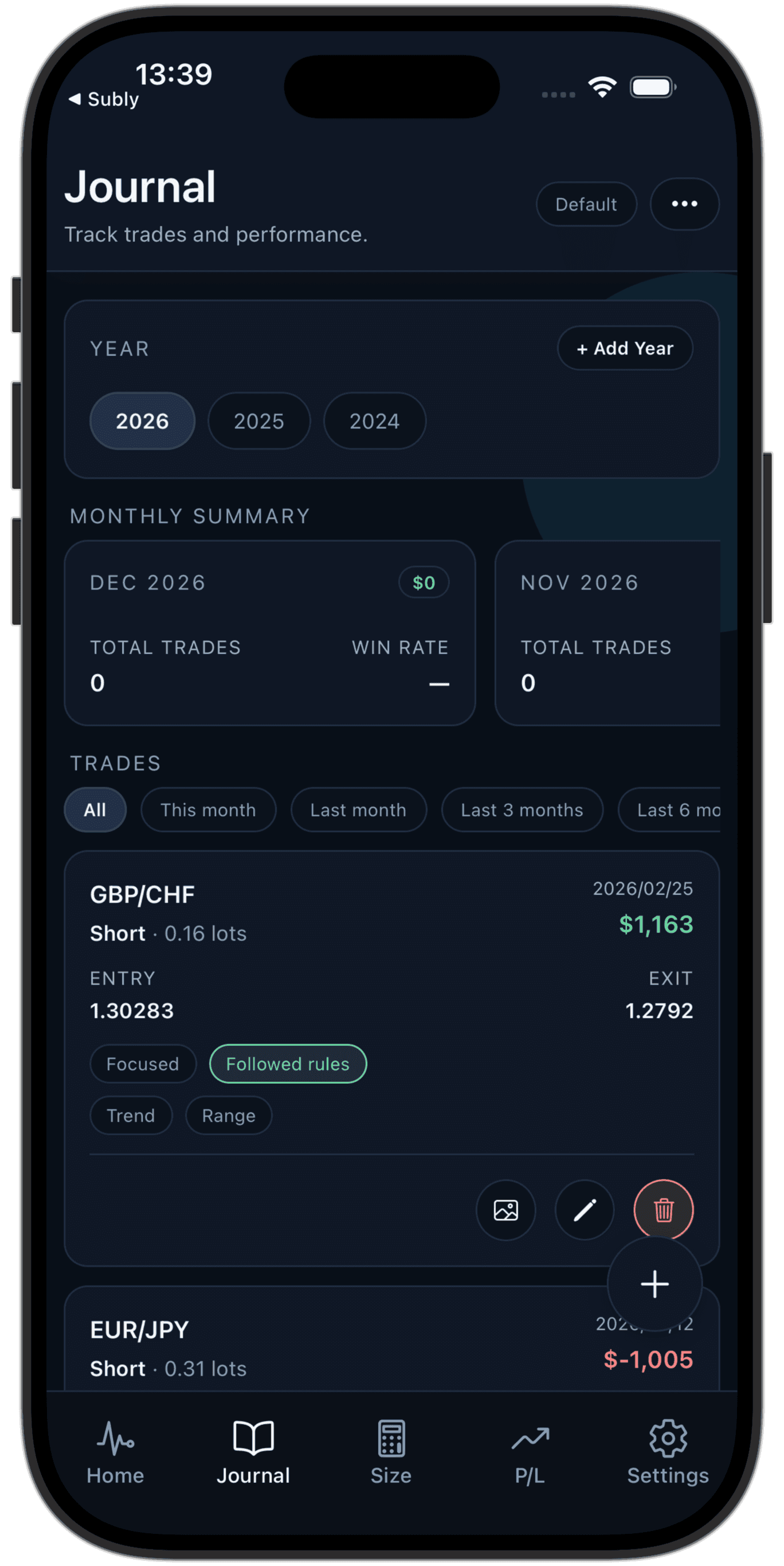 Trade Journal is built for traders who want cleaner execution and a structured review process. The app keeps logging fast so post-trade analysis actually happens.